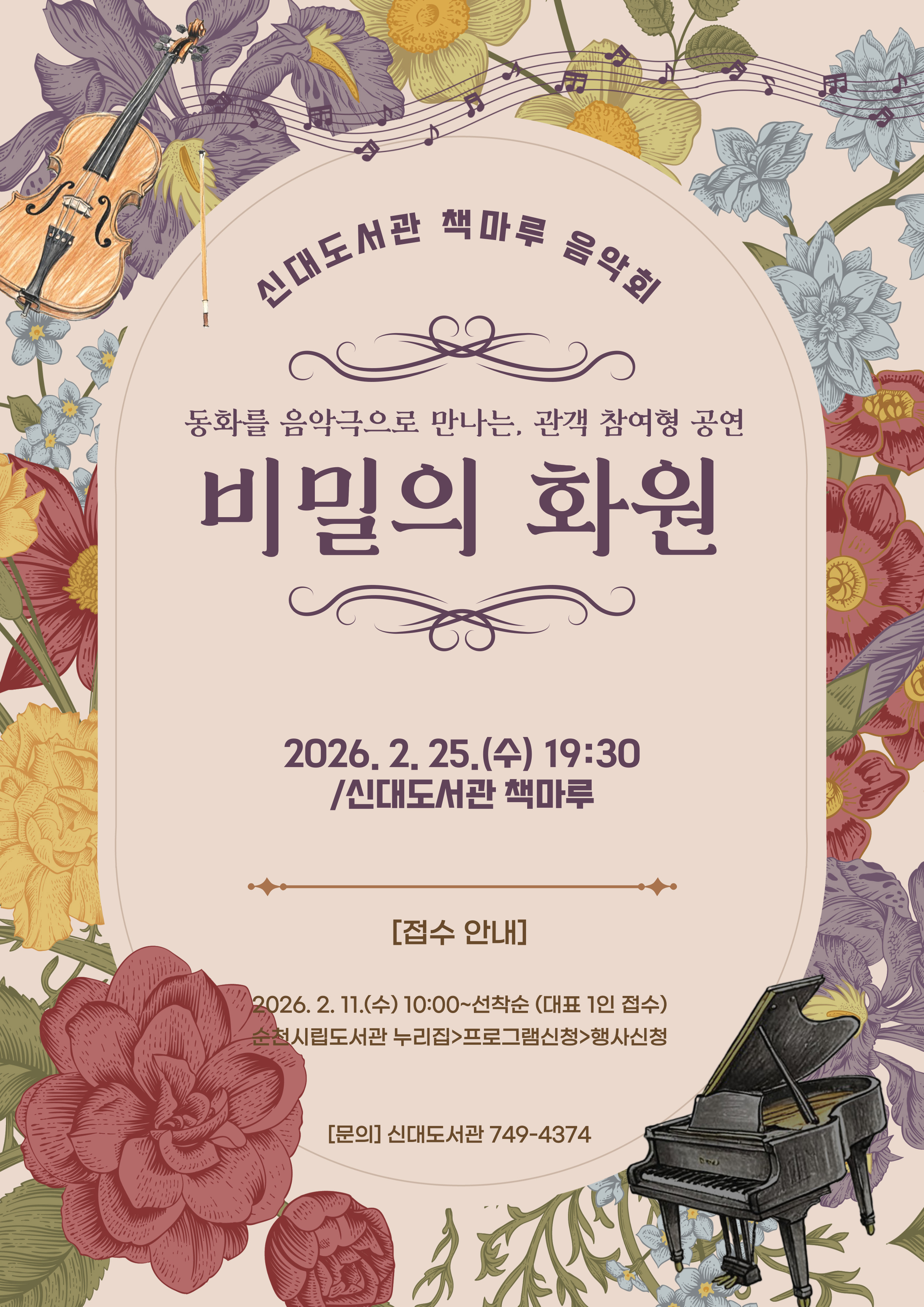 신대도서관 책마루 음악회 <비밀의 화원> 참여자 모집